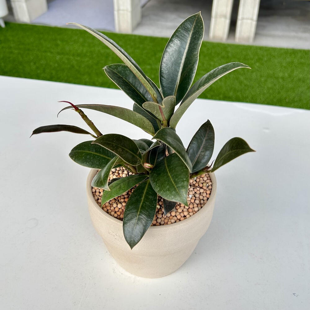 *고무나무는 잎위에 먼지가 쌓여있으면 숨쉬기 힘들어하여 젖은 천으로 자주 닦아 주세요