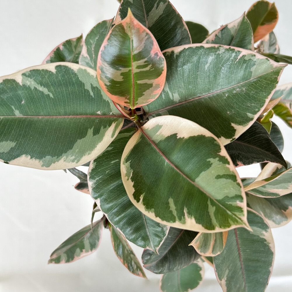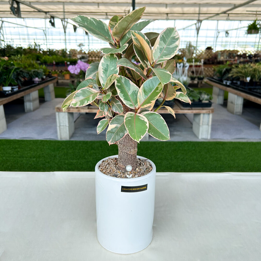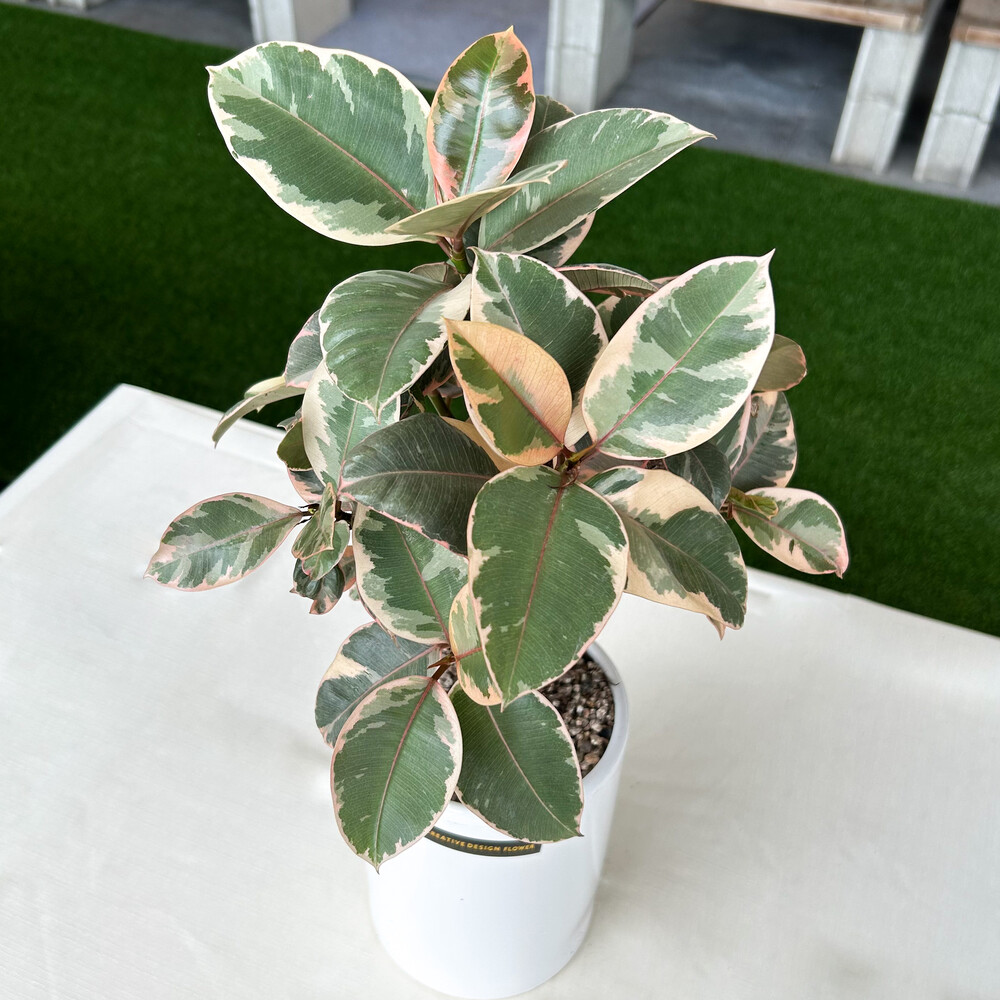 [뱅갈고무나무의 한 종류로 잎이 수채화물감이 번지듯 한 무늬가 특징이며 인테리어 식물로 인기가 많습니다.]